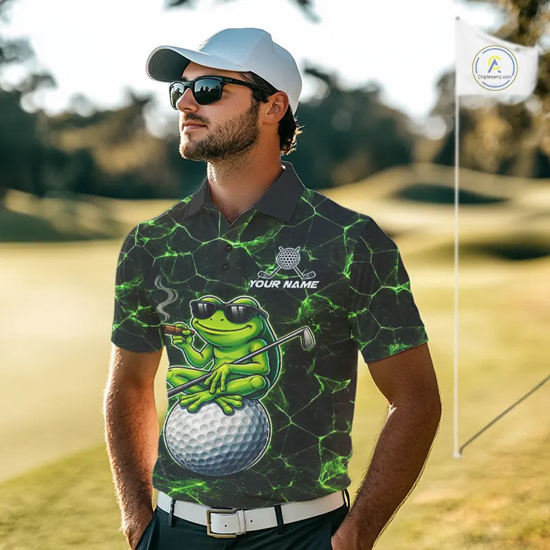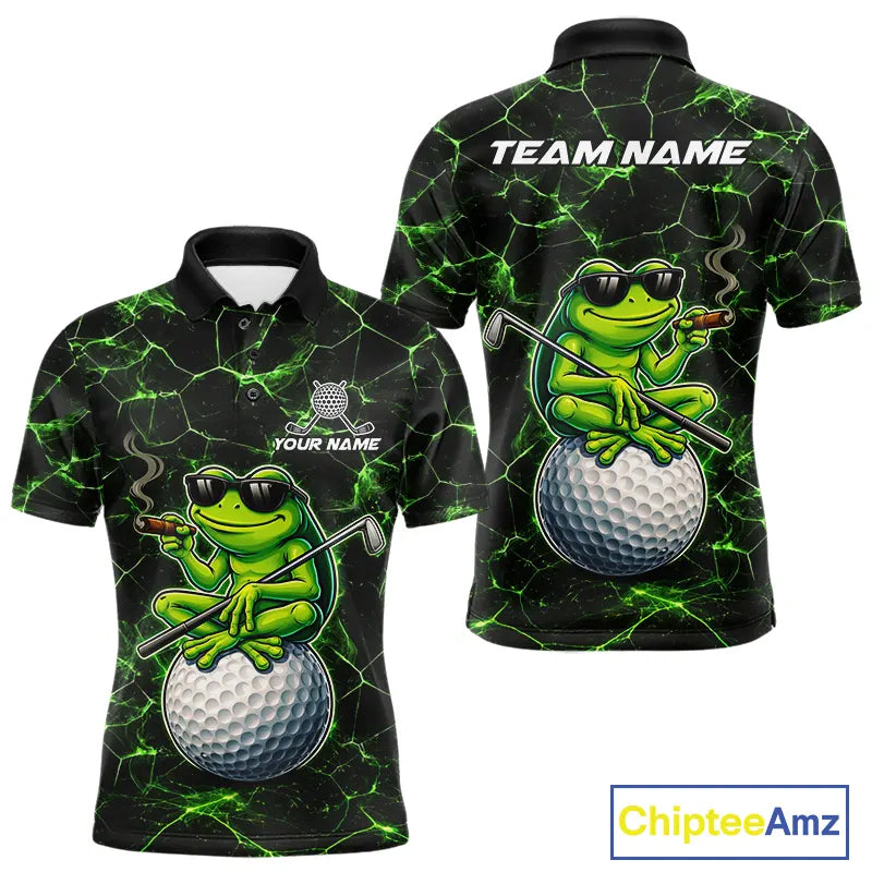 Black & Green Funny Frog Golf Polo shirts for men Custom Frog team golf shirts, men's golf clothes NQS11584