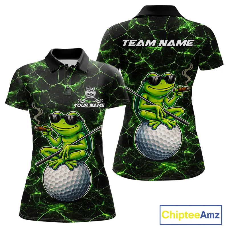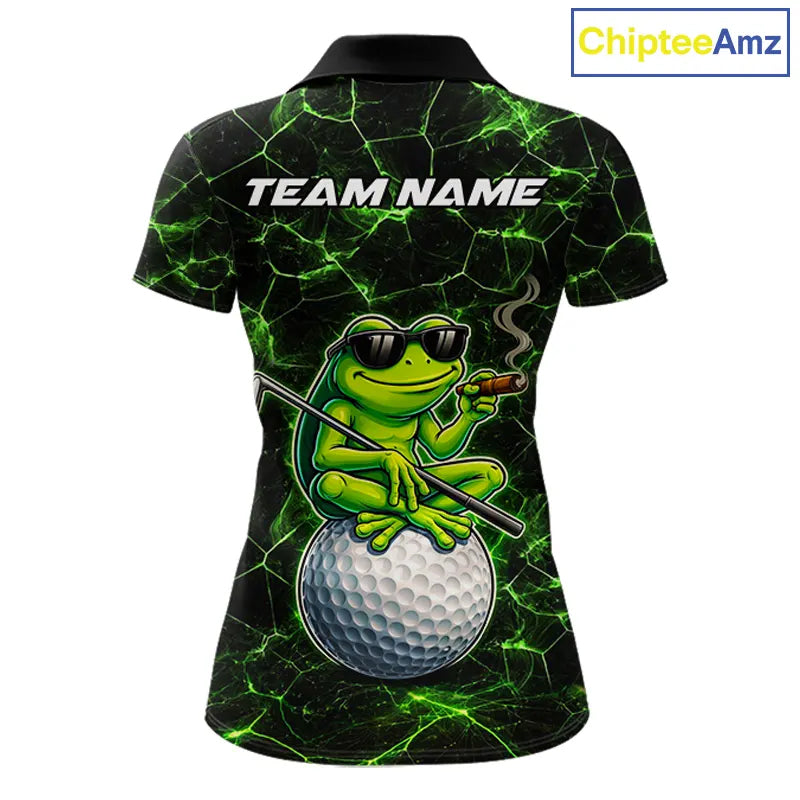 Black & Green Funny Frog Golf Polo shirts for Women Custom team golf shirts, ladies golf clothes NQS11584
