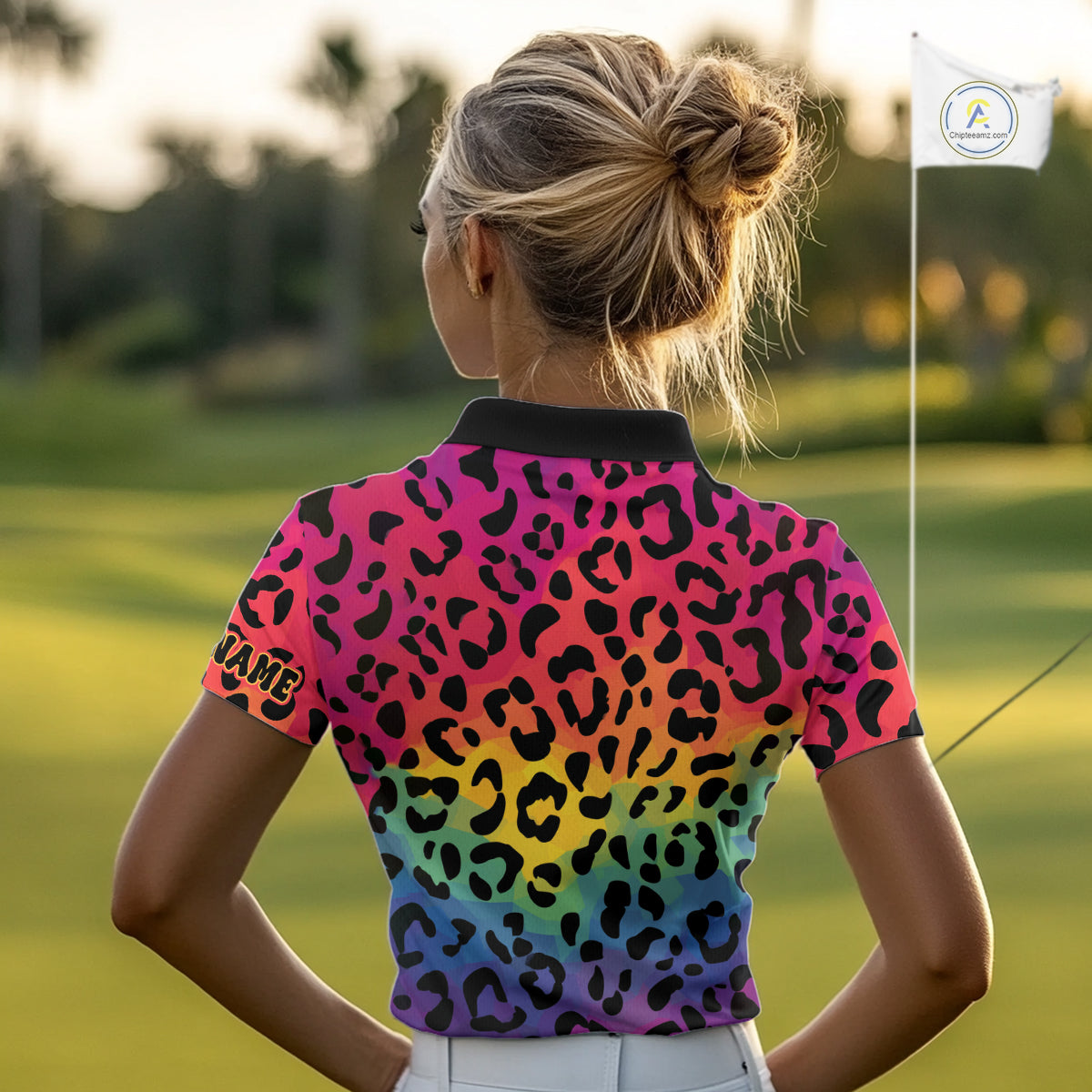 Custom Colorful rainbow pattern Women golf polo shirt, Personalized animal print golf shirt outfit NQS10405