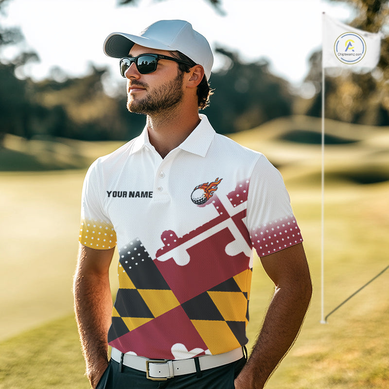 Maryland Flag Men golf polo shirt Custom patriotic golf outfit for men NQS10105
