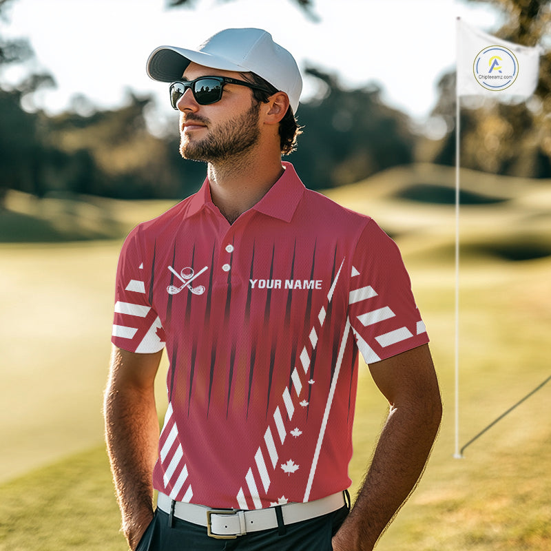 Red and White maple leaf Canadian Men golf polo shirt Custom Patriotic Golf attire For men NQS10185