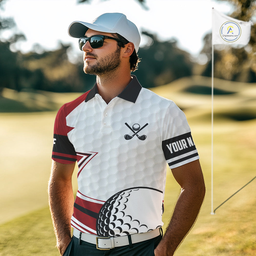 Red & white golf ball short sleeve, long sleeve golf polo shirts custom name golf gifts for men NQS10215