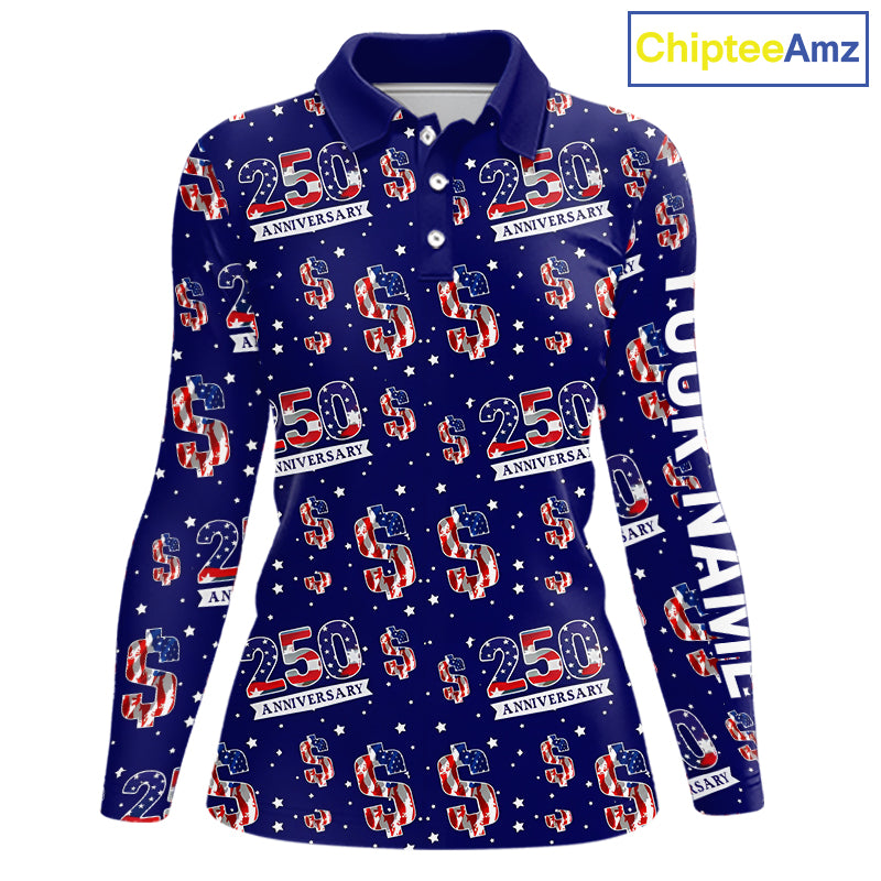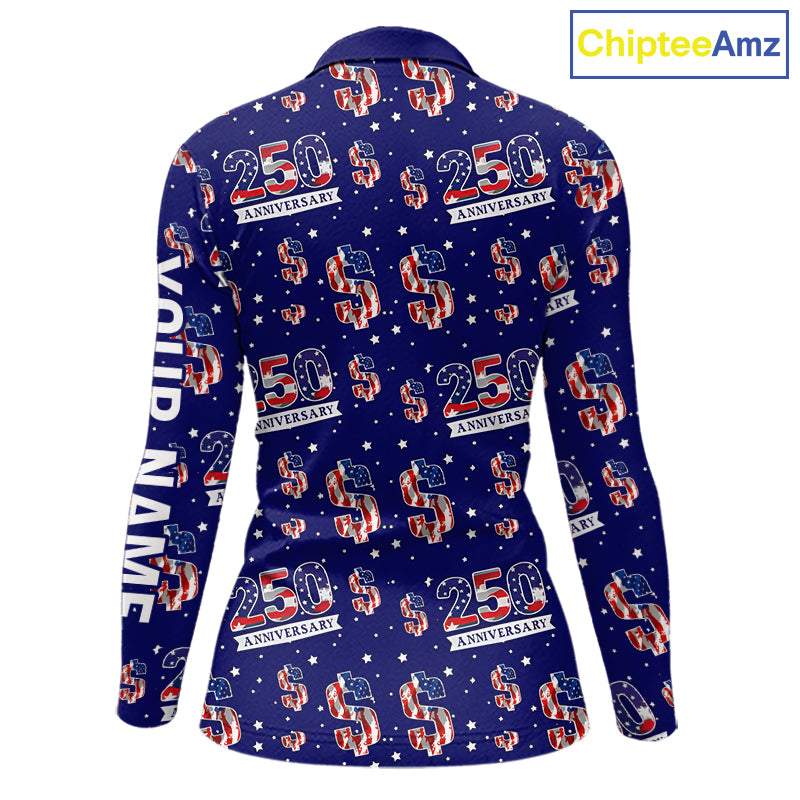 USA 250th Anniversary Womens Long Sleeve Golf Polo Shirt Custom Patriotic American Flag Team Golf Tops NHN0235