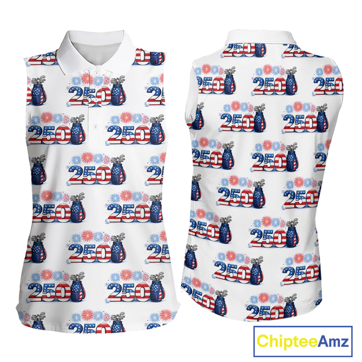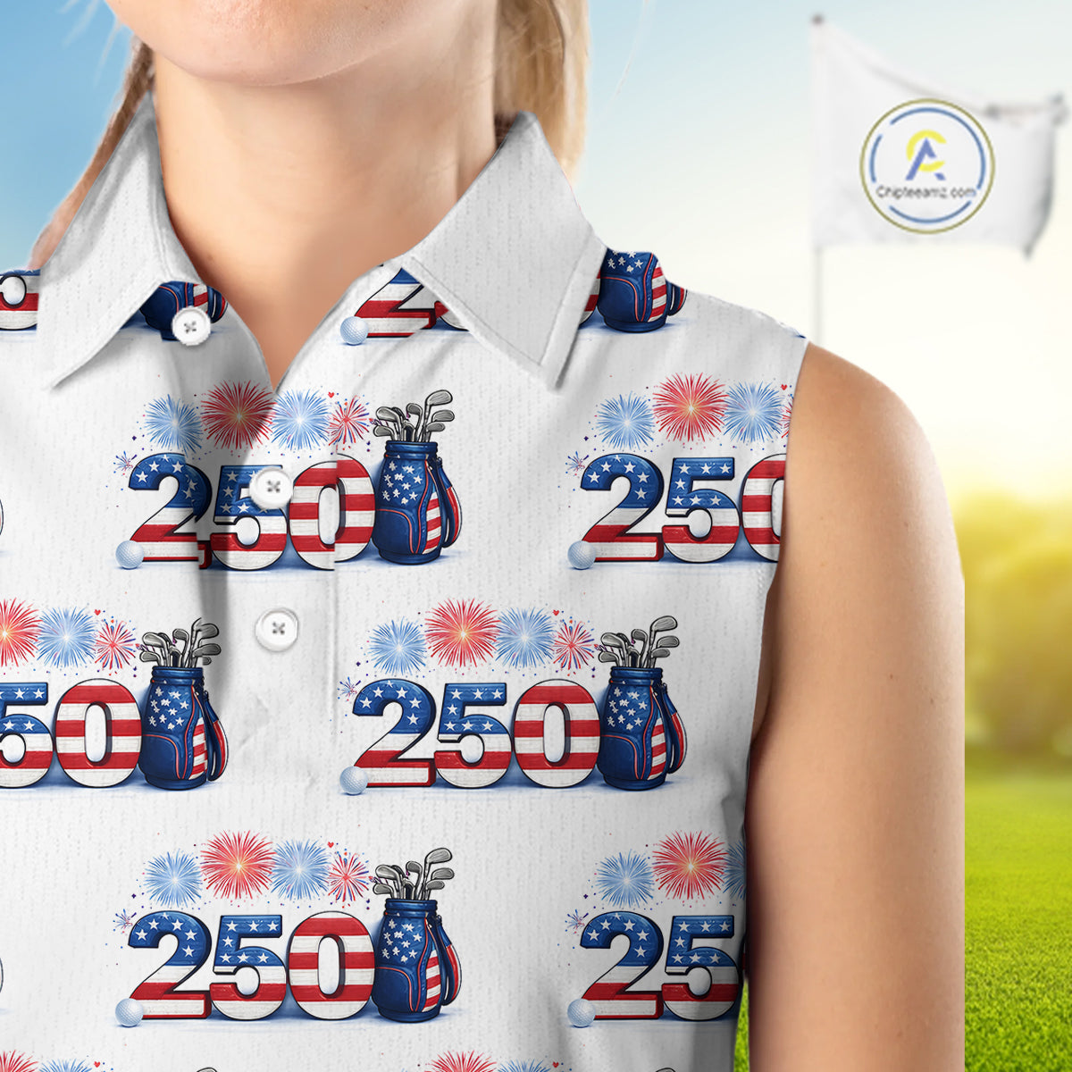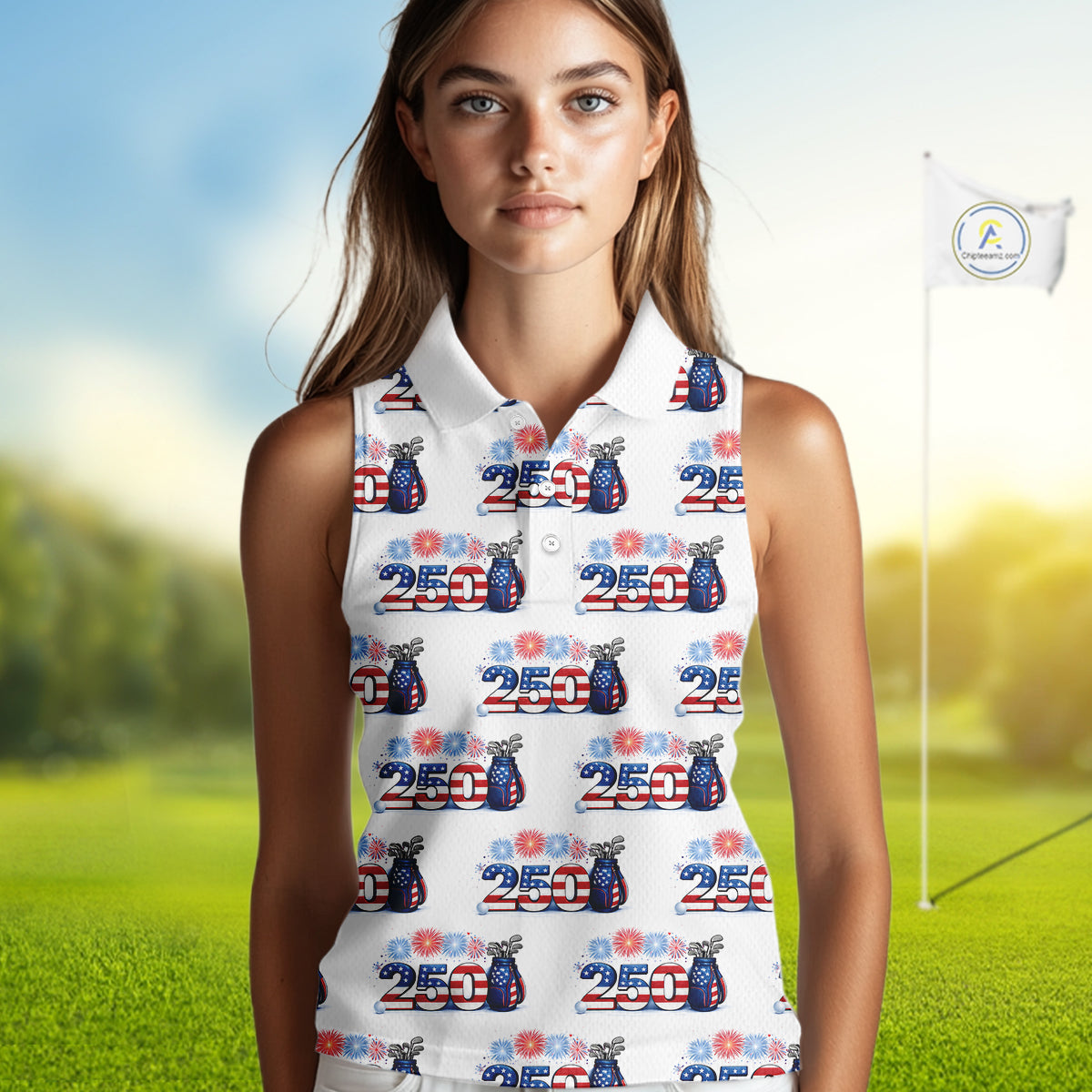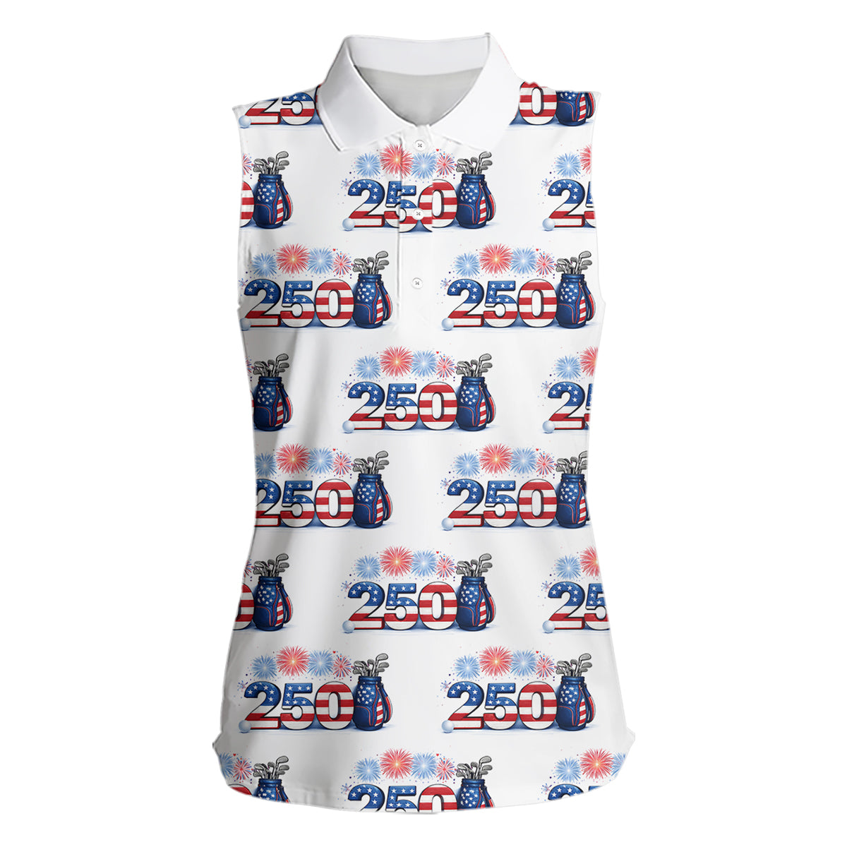 USA 250th Anniversary Womens Sleeveless Golf Polo Shirt Custom Golf Pattern Patriotic Golf Tops NHN0234