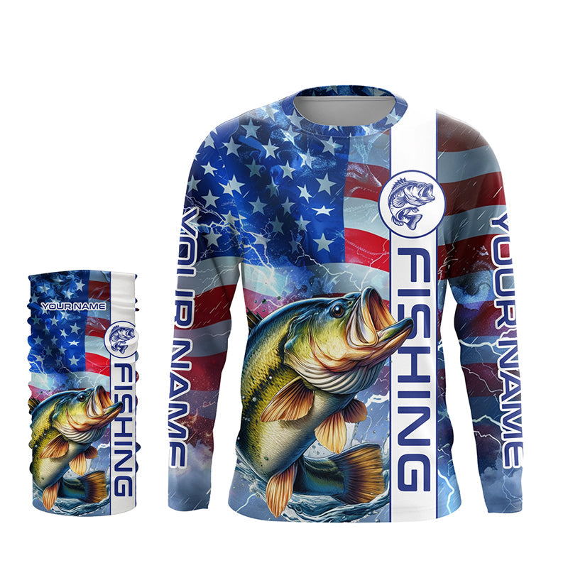 American flag Largemouth Bass fishing Long Sleeve Fishing Shirts custom Patriotic Bass fishing jerseys NQS7704