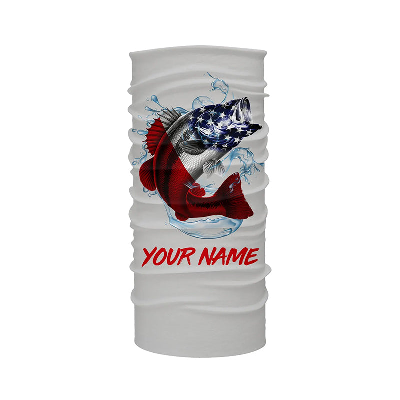 American flag Largemouth Bass fishing personalized patriotic UV Protection Fishing Shirts | Gray NQS5821