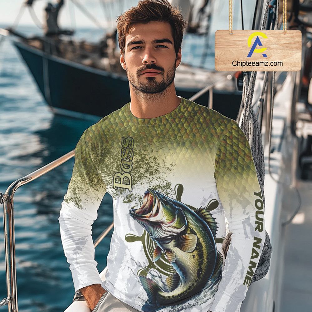Bass fishing scales pattern Custom performance long sleeve Fishing Shirts, Bass Fishing jersey NQS10087