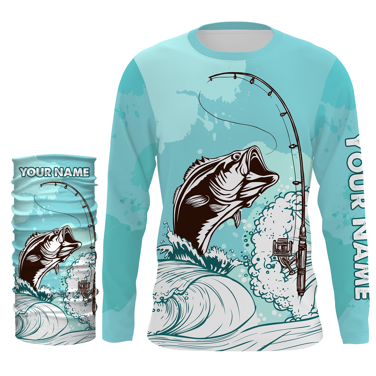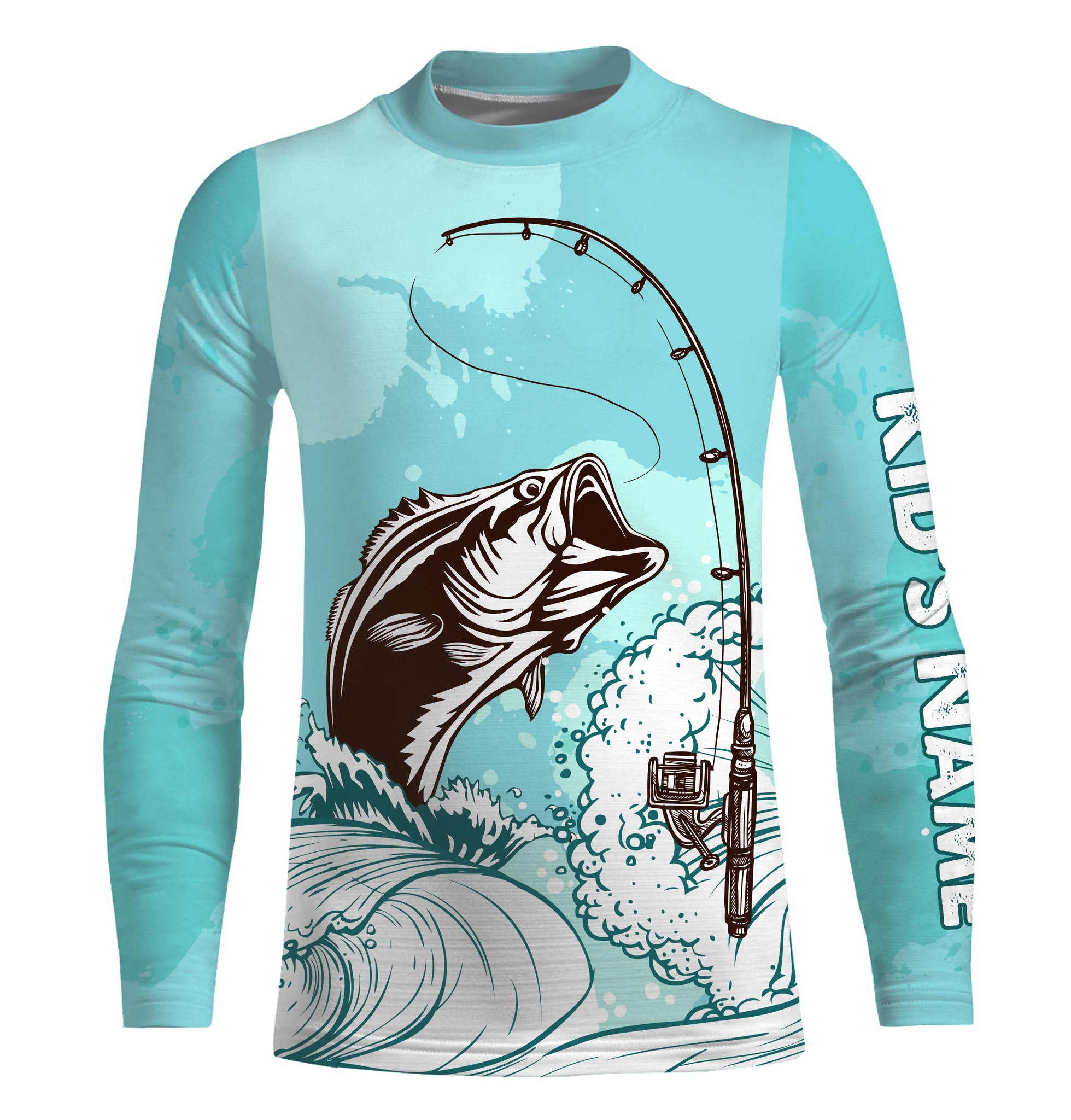 Bass Fishing Custom Long sleeve performance Fishing Shirts, Bass Fishing jerseys | sky blue - TTN32