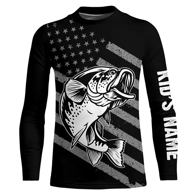 Bass Fishing USA Flag Custom Long sleeve Performance Fishing Shirts, Patriotic Bass Fishing Jerseys TTN113