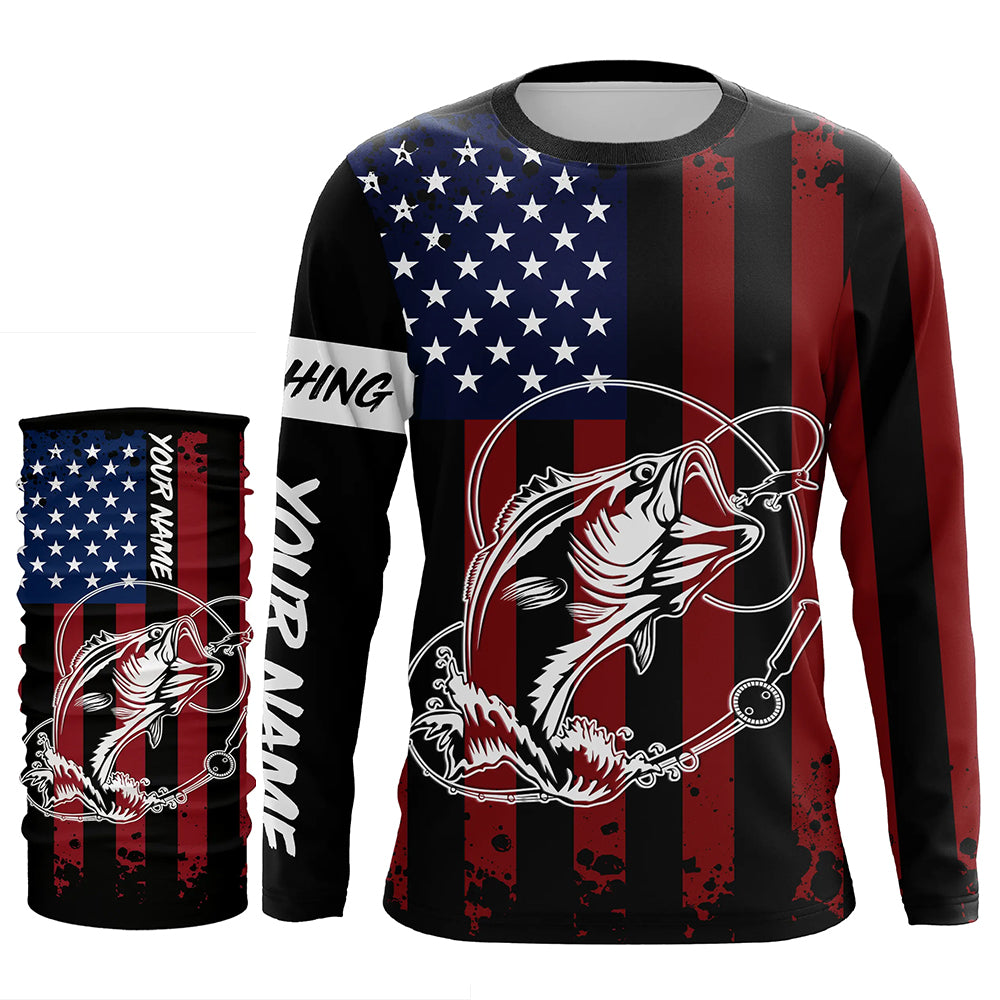 Black American flag Bass fishing tattoo customize performance long sleeves patriotic Fishing shirts NQS6131