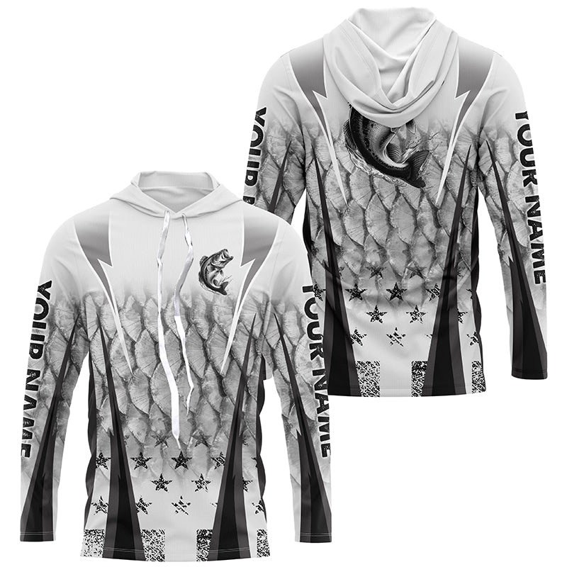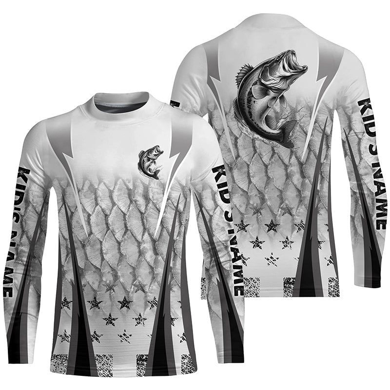 Black and white Largemouth Bass fishing scales Custom performance long sleeve Bass fishing shirts NQS7361