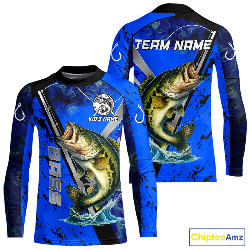 Blue Camo Bass fishing custom Largemouth Bass sun protection long sleeve fishing shirts for Team NQS10816