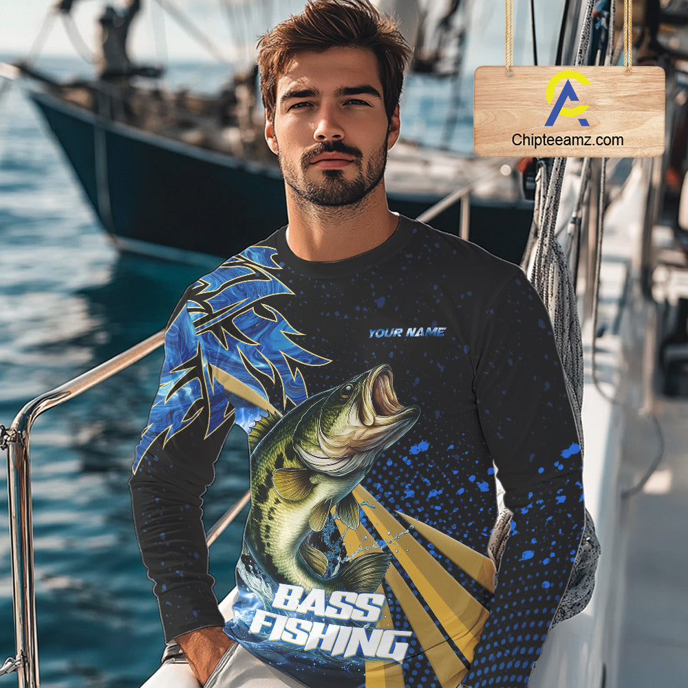 Blue Camo Largemouth Bass fishing Custom sun protection Bass fishing jerseys, custom fishing apparel NQS9931