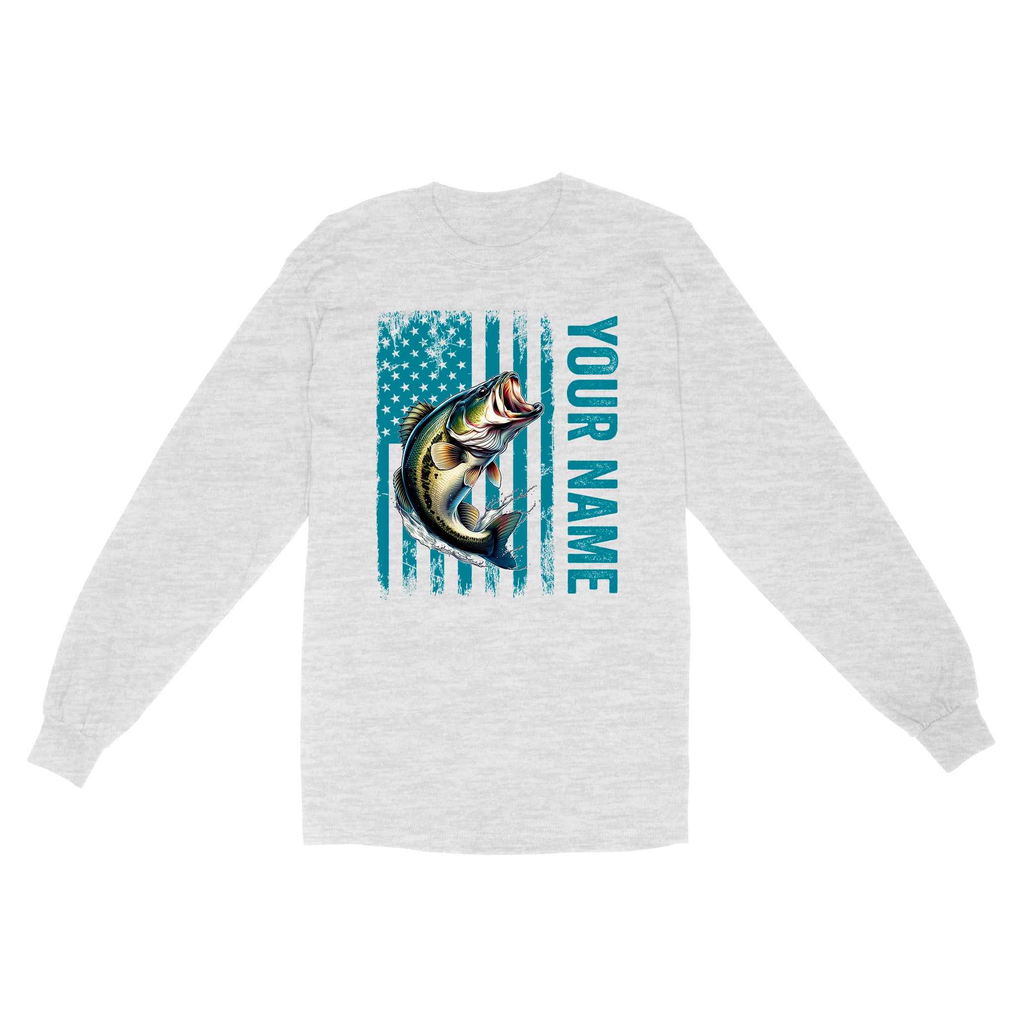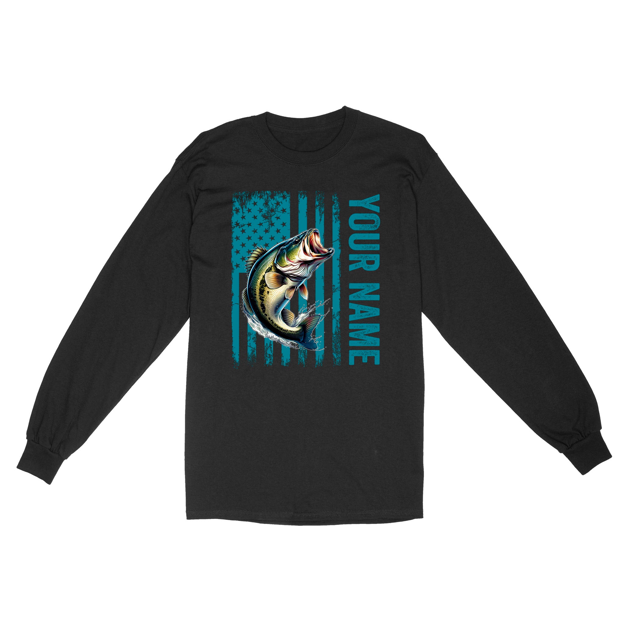 Blue American Flag Largemouth Bass Fishing Custom Bass Fishing Long Sleeve, Gift for Fisherman D03 NQS9908
