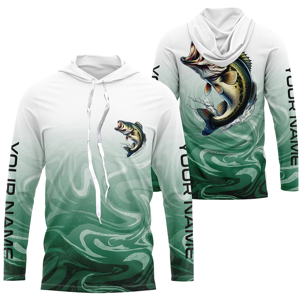 Custom Largemouth Bass Long Sleveeve Tournament Camo Fishing Shirts, Bass Fishing Jerseys IPHW6042