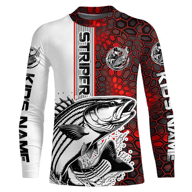 Striped Bass Fishing Red Camo Long Sleeve Fishing Shirts With Custom Name, Striper Fishing Jerseys IPHW6620