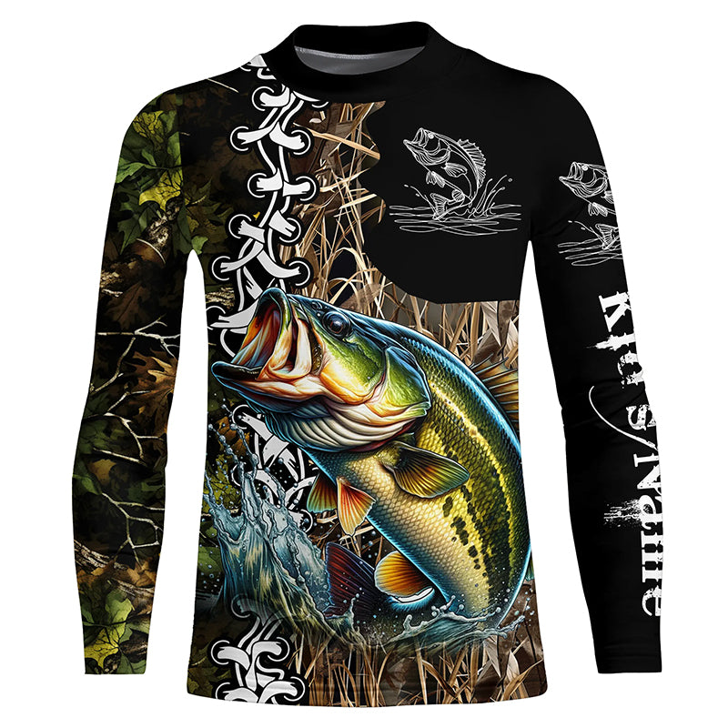 Largemouth bass Fishing Camo Customize Name 3D All Over print shirts personalized fishing apparel NQS441