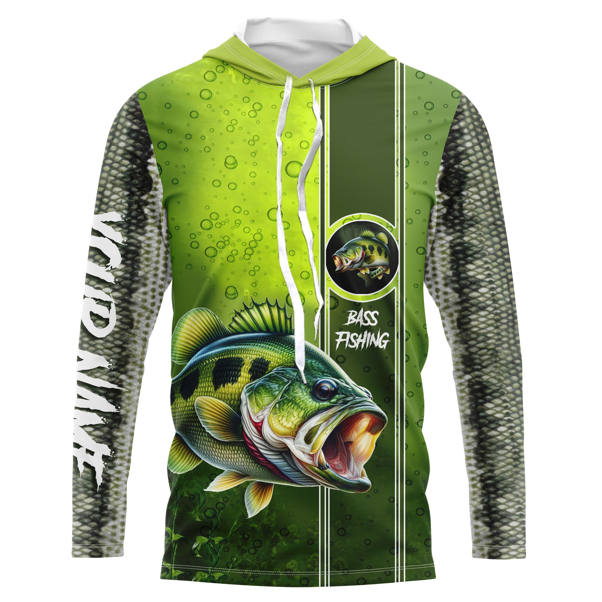 Largemouth Bass Green Scale Fishing UV protection custom name long sleeves Fishing shirts NQS603