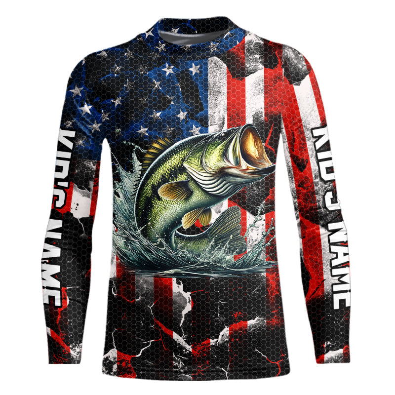 Largemouth Bass fishing American flag Custom UV protection performance long sleeve fishing jerseys NQS9276