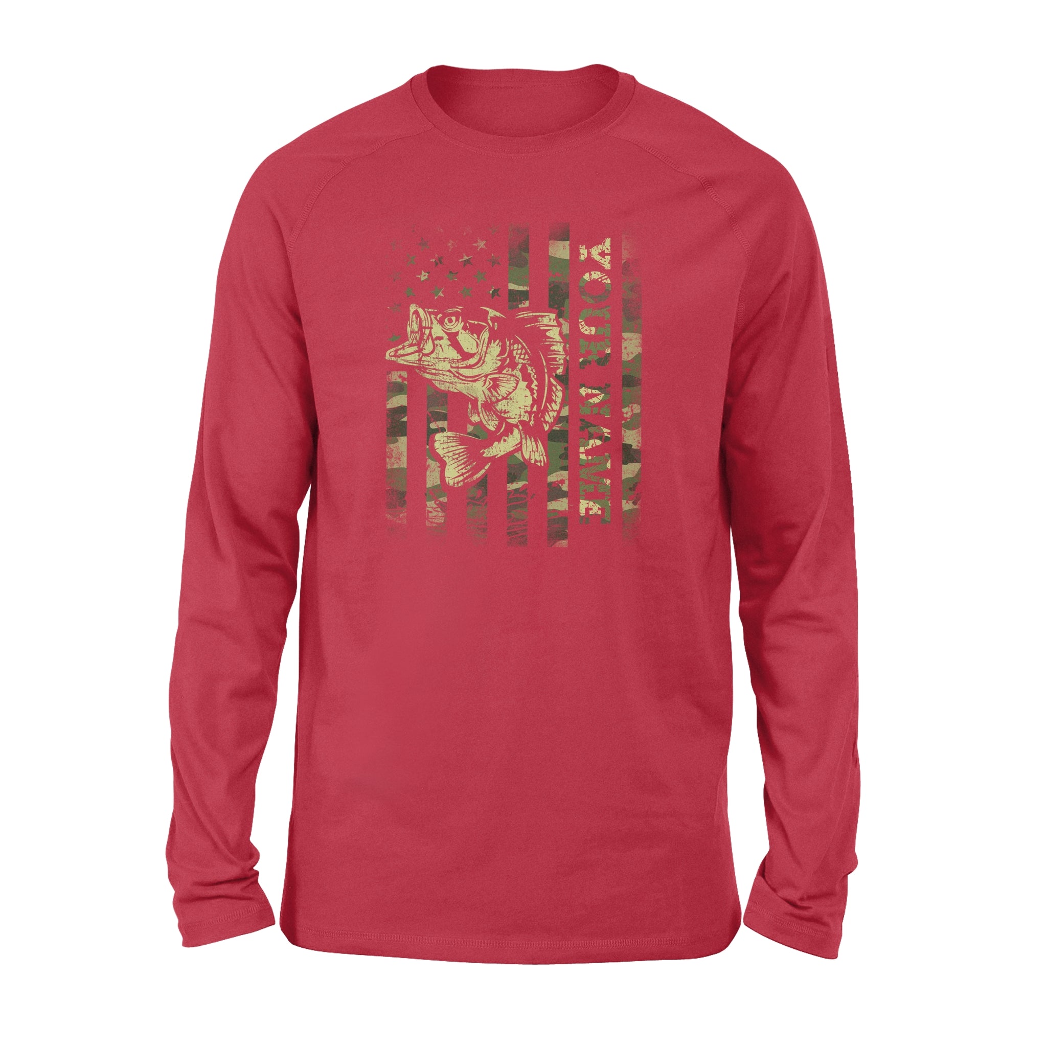 Largemouth bass fishing American flag green camo custom name fishing shirts D05 NQS1428 - Standard Long Sleeve