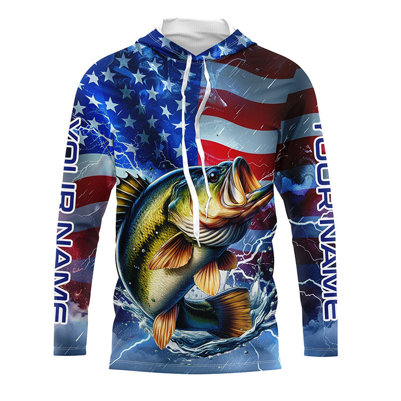 Largemouth Bass fishing American flag Long Sleeve Fishing Shirt custom Lightning Bass fishing jersey NQS7702