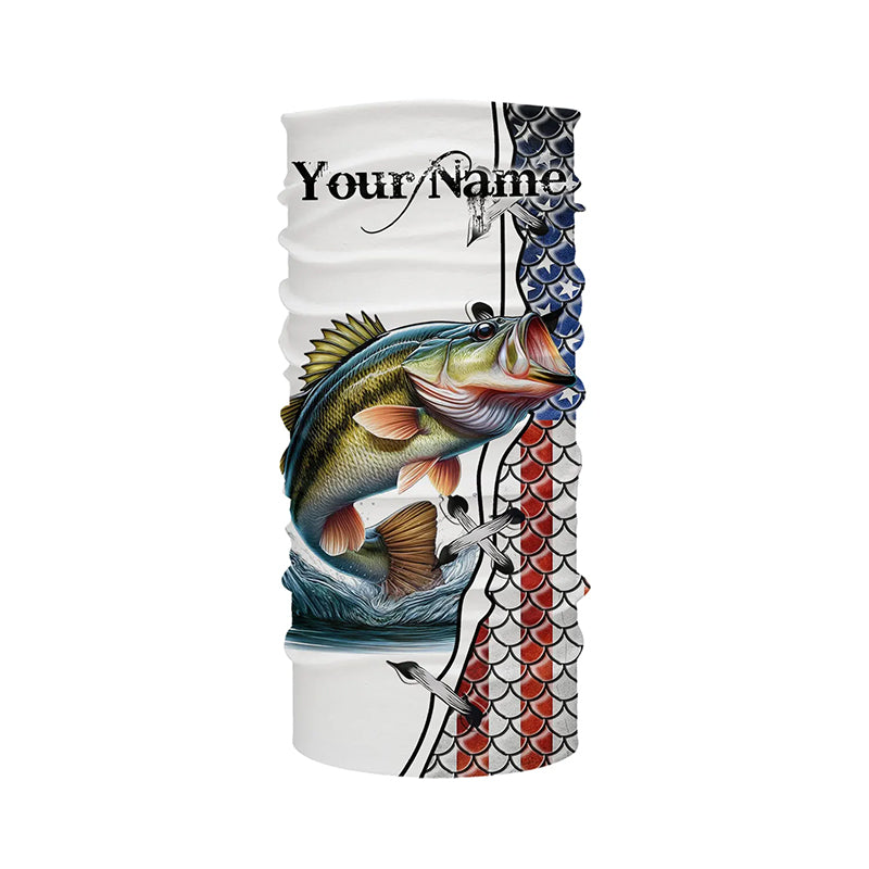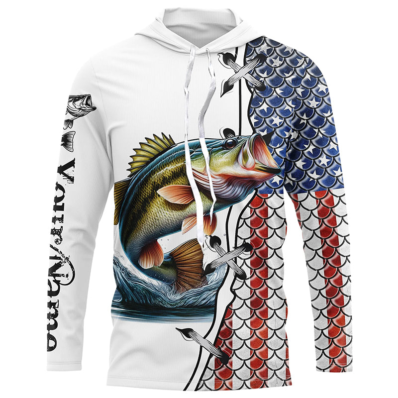 Largemouth Bass fishing American flag patriotic 4th July Custom name performance fishing shirts NQS2072