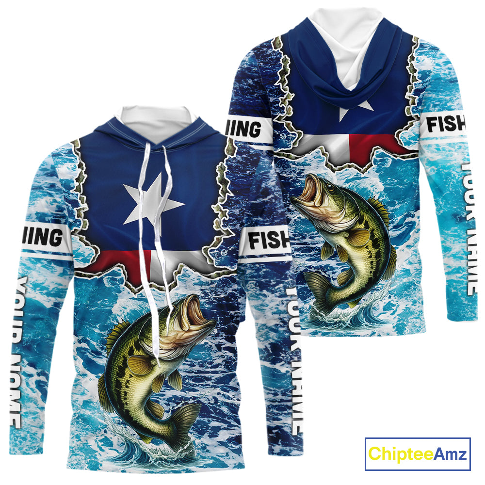Texas Bass Fishing blue ocean camo custom Largemouth Bass long sleeves performance fishing shirts NQS9999