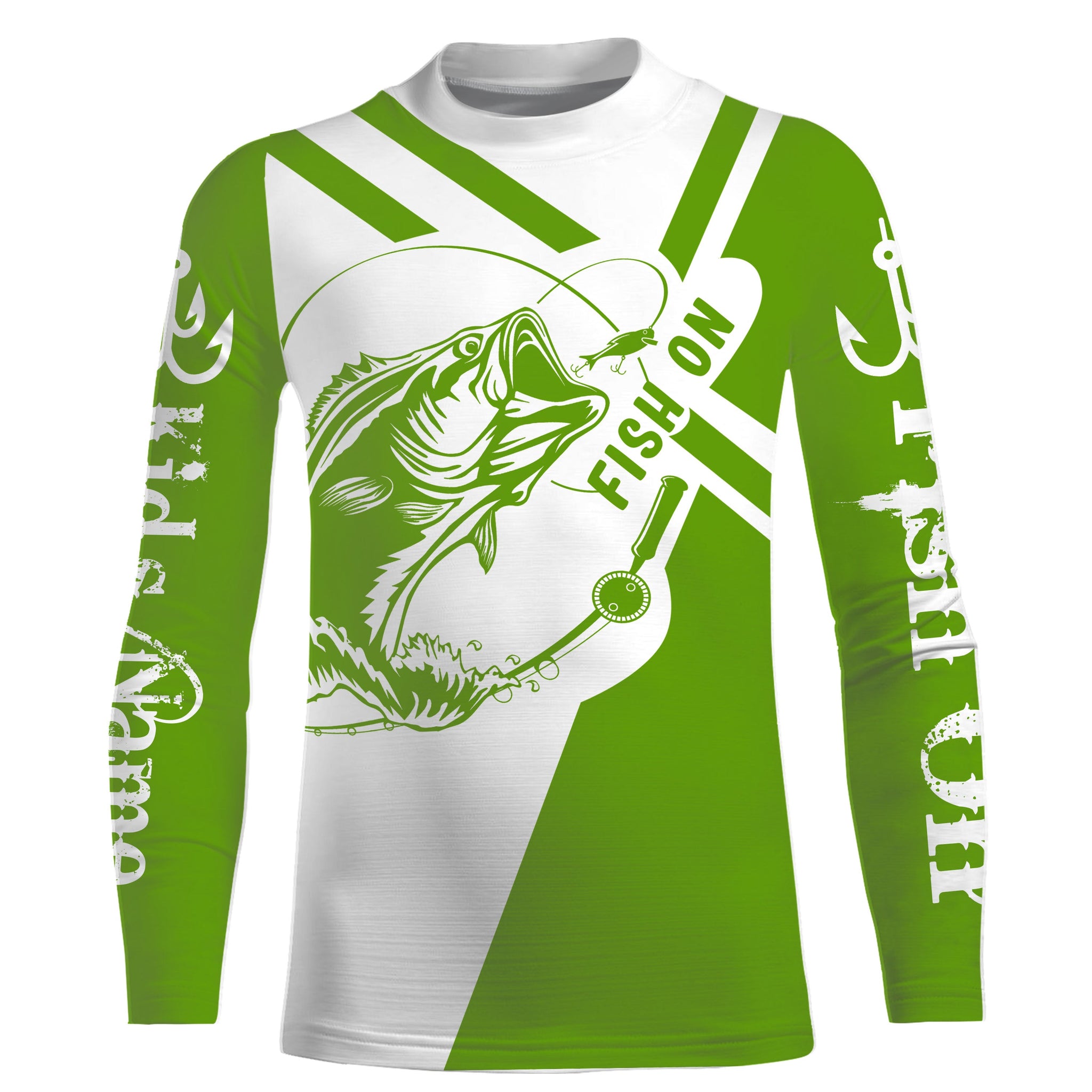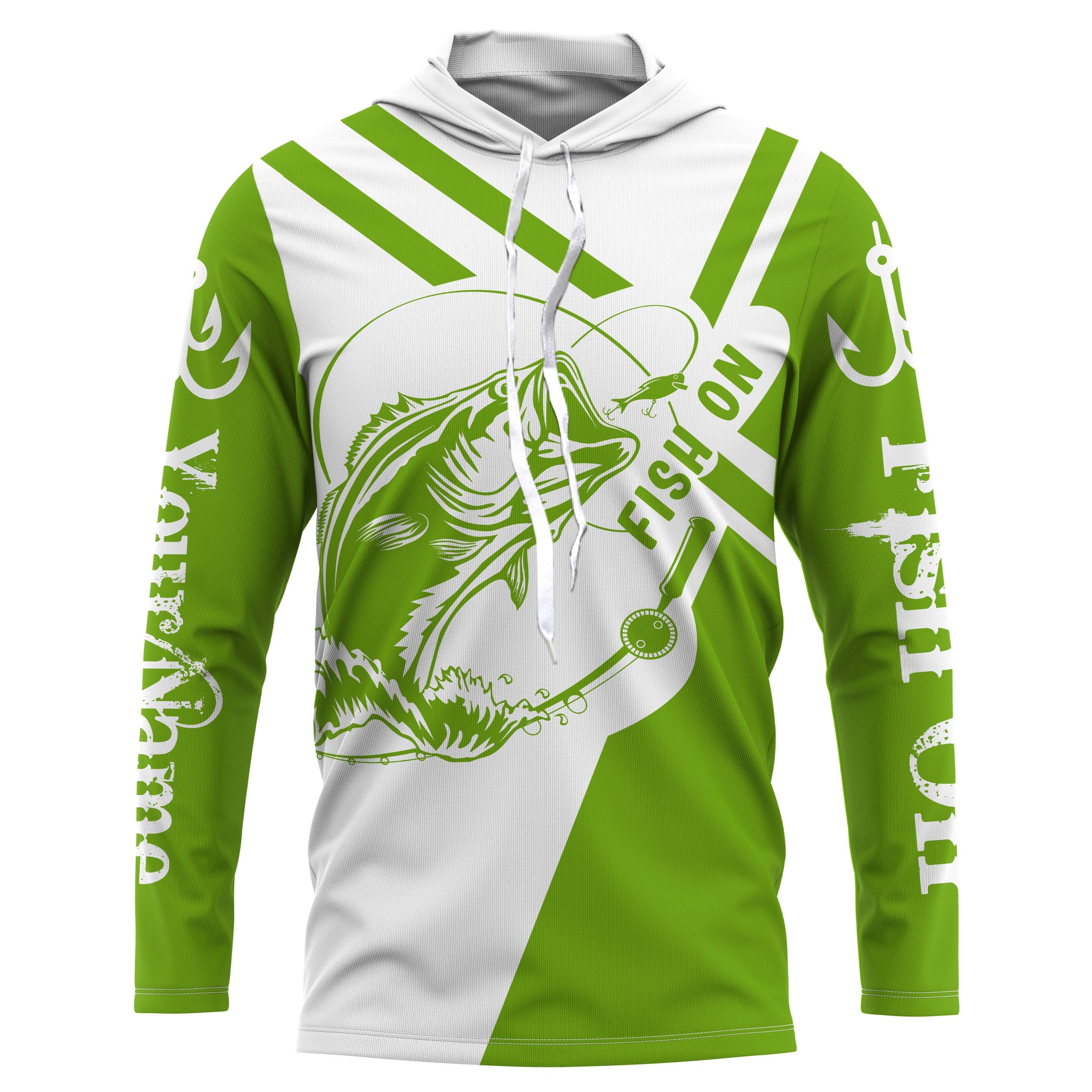 Largemouth Bass fishing clothes green Custom upf fishing Shirts, custom fishing shirts with hood NQS3082
