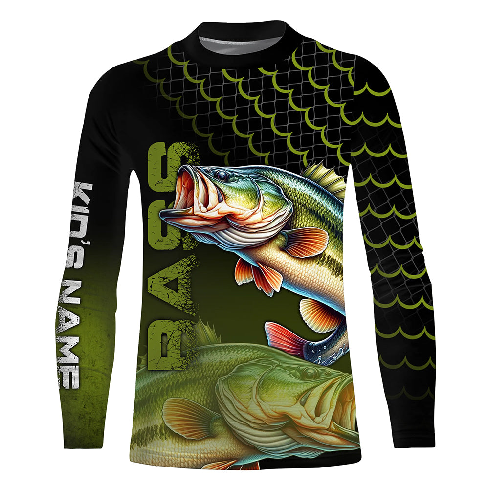 Largemouth bass fishing green custom sun protection long sleeve fishing shirts, bass fishing jerseys NQS4312