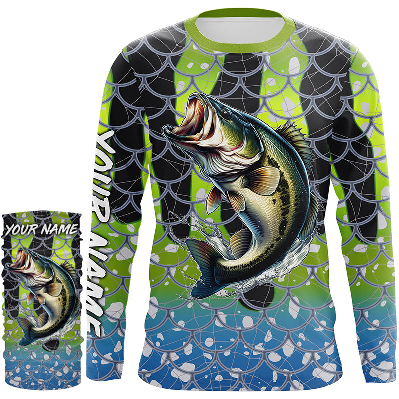 Largemouth Bass Fishing scales customize name performance UV protection long sleeves fishing shirt NQS643