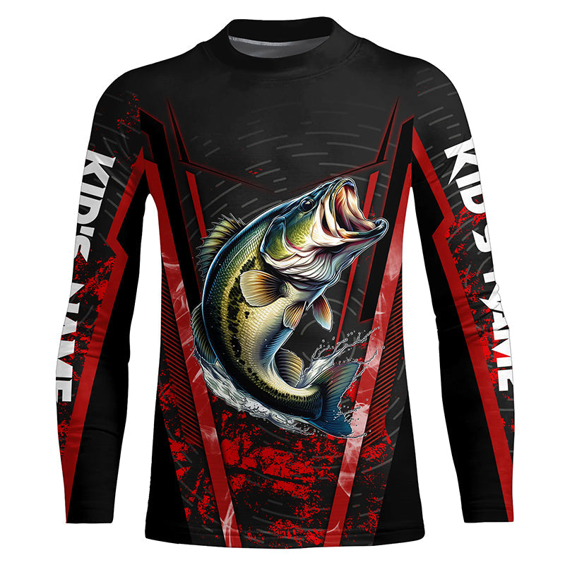 Largemouth Bass fishing shirts Custom UV protection performance black fishing tournament shirts | Red NQS7223