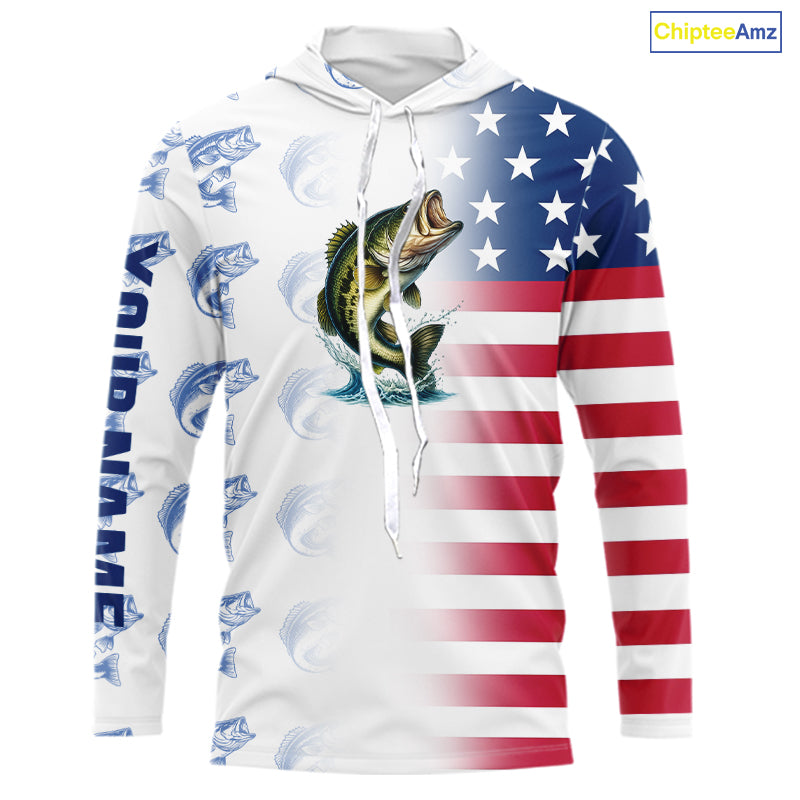 Red, White and Blue American Flag Bass Fishing custom patriotic Bass performance Fishing Shirts NQS10034