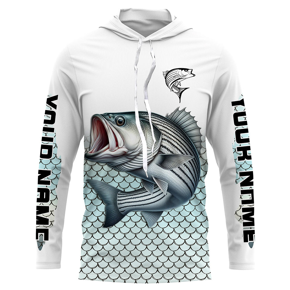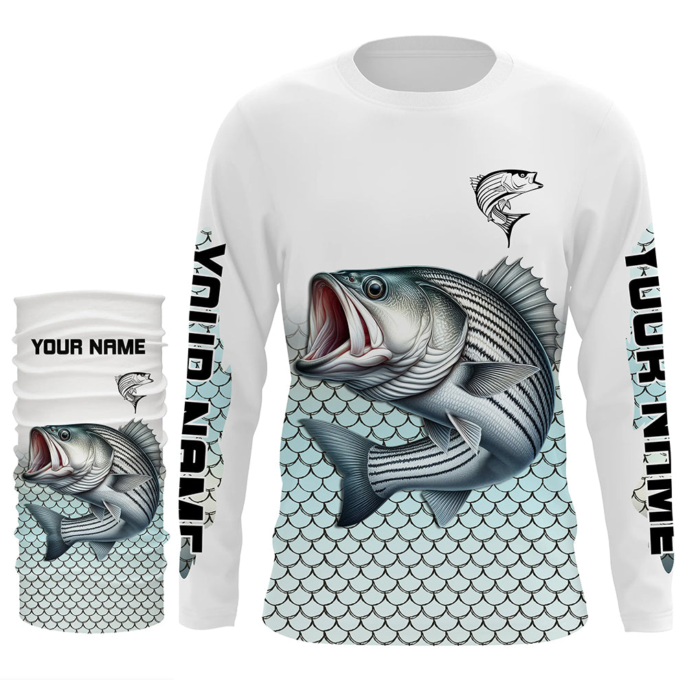 Striped Bass Fishing jerseys, Striper scales Custom name Long Sleeve performance Fishing Shirts NQS4513