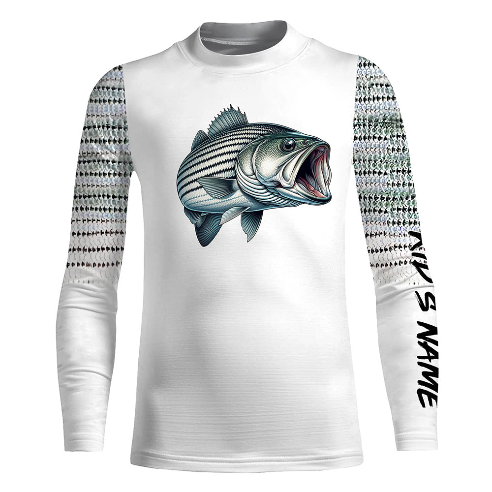 Striped bass Fishing scales Custom long sleeve Fishing Shirts, personalized Striper fishing apparel NQS581