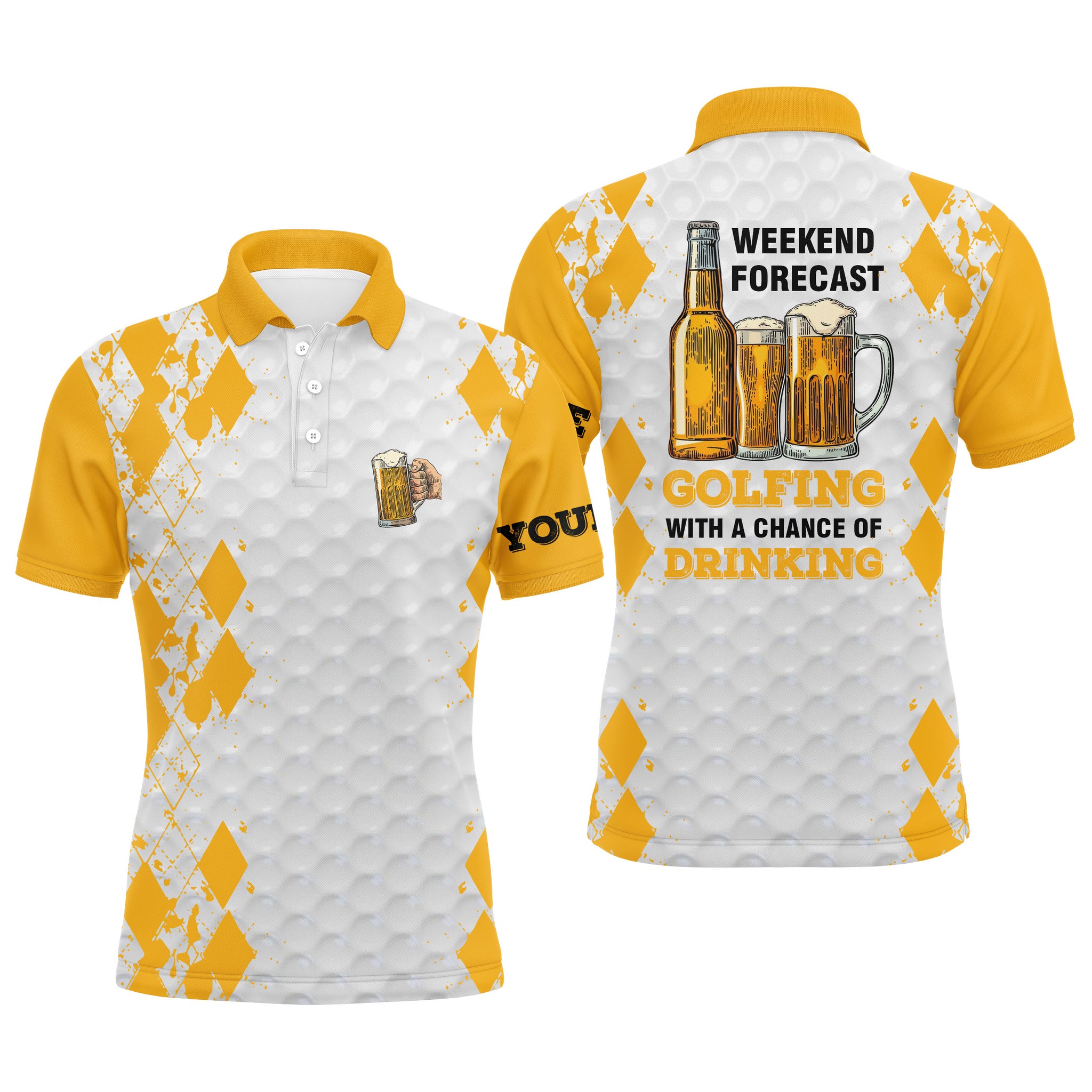 Weekend forecast Golfing with a chance of drinking beer custom name funny mens golf polo shirt NQS4031