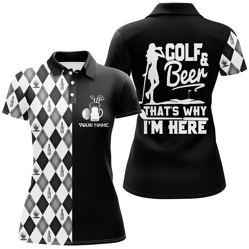 Golf & Beer That’s Why Im Here Black White Argyle Pattern Golf Polo Shirt Golf Tops For Women LDT0792