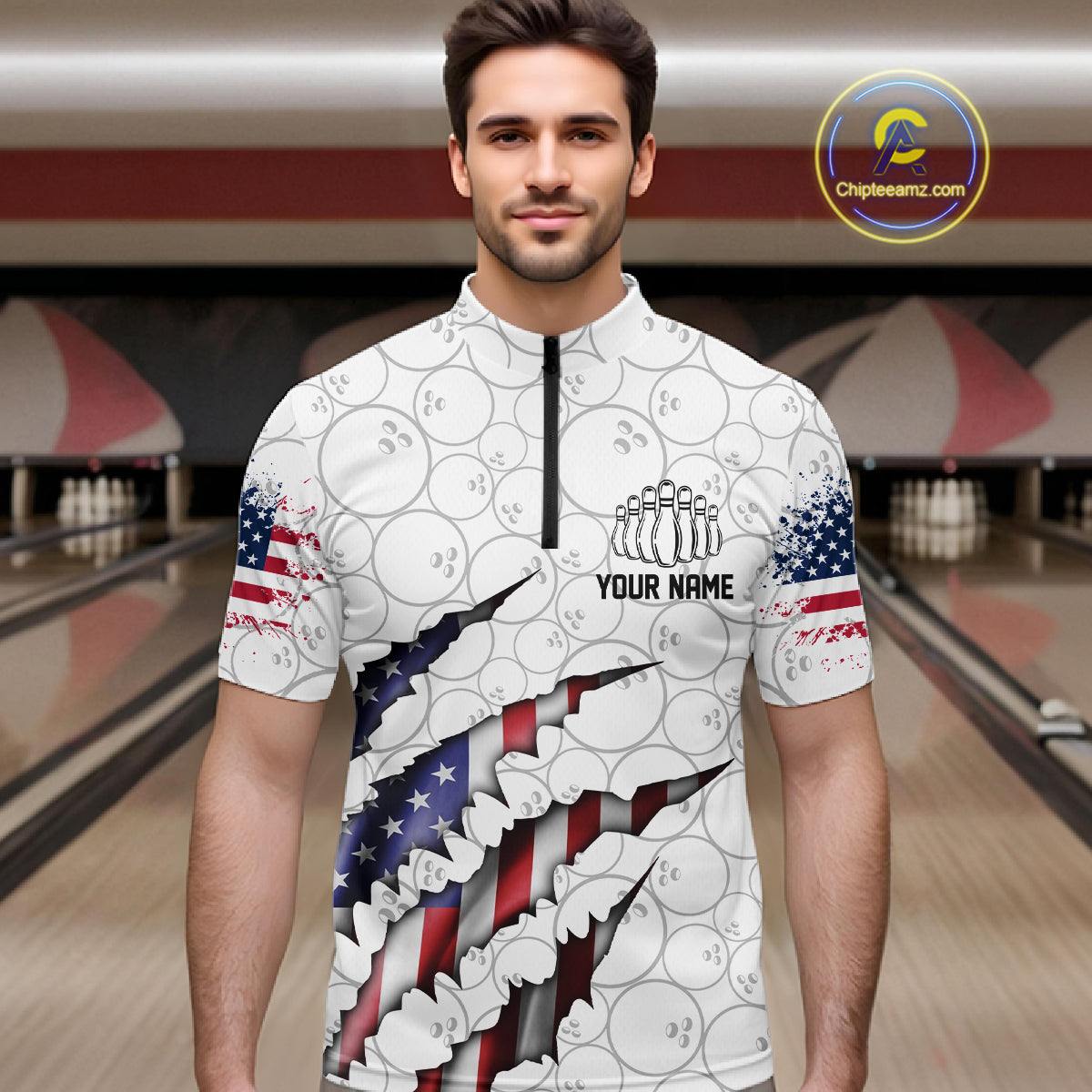 Personalized American Flag Bowling Team Shirts For Men And Women Patriotic Bowling Gifts IPHW5523