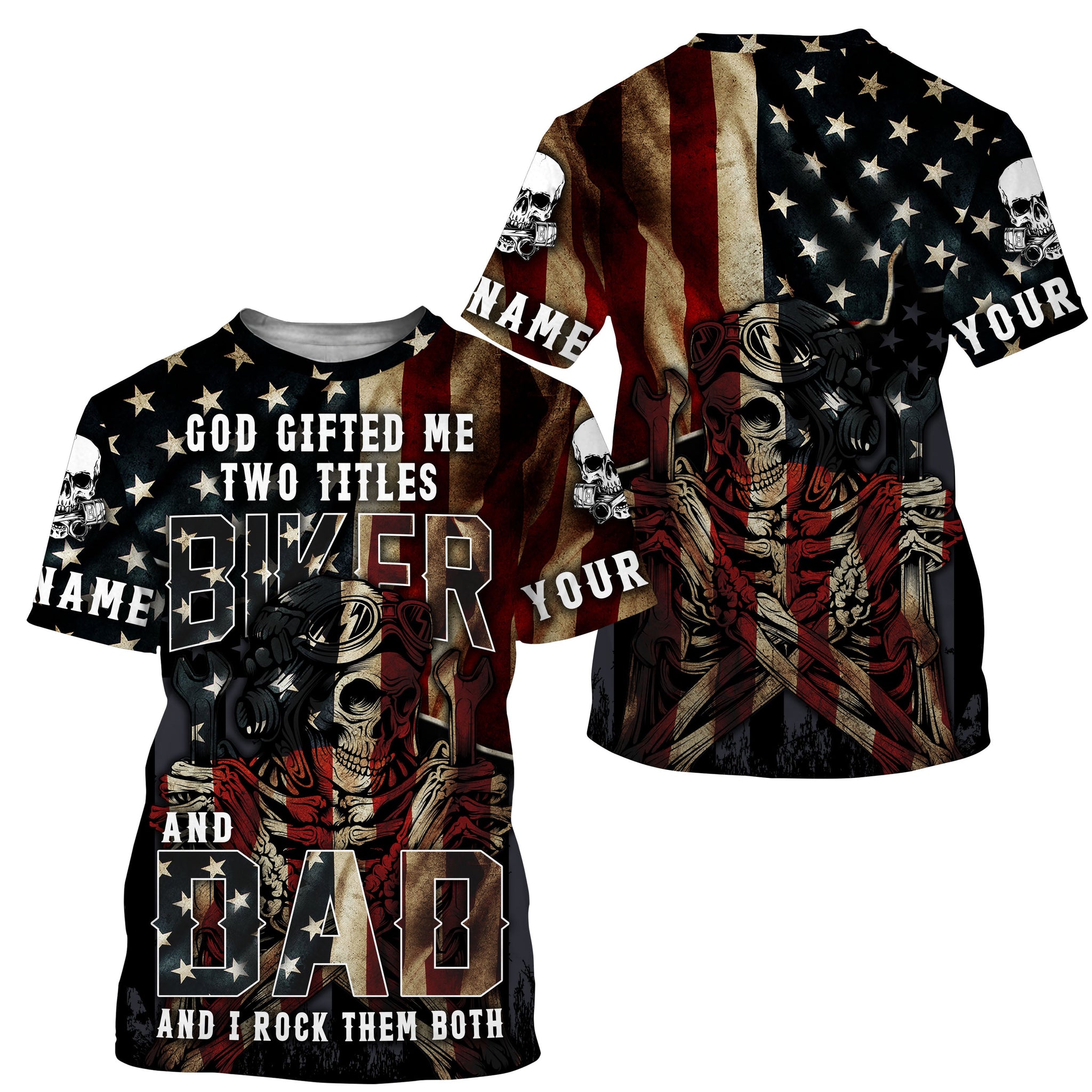 Biker Dad American Flag Riding Jersey Personalized Motorcycle Shirt Father's Day Gift for Dad Riders| NMS519