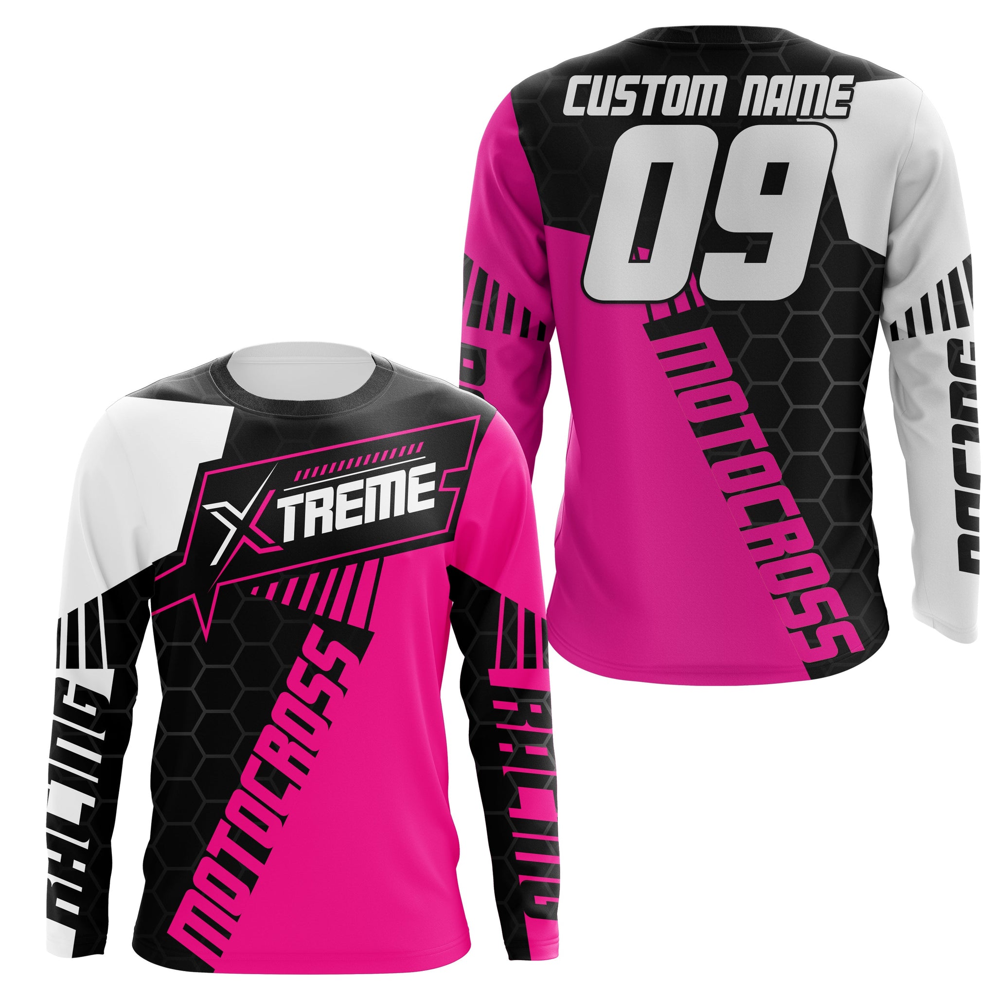 Extreme Motocross Jersey Personalized UPF30+ Racing Shirt Dirt Bike Off-road Biker Motorcycle - Pink NMS631