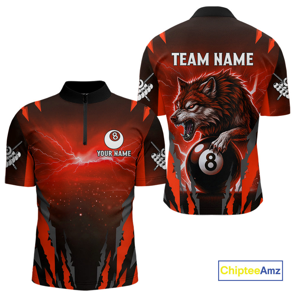 Personalized Thunder Lightning Wolf Billiard Shirt For Men, 8 Ball Billiard Team Jerseys |Red TDM4549