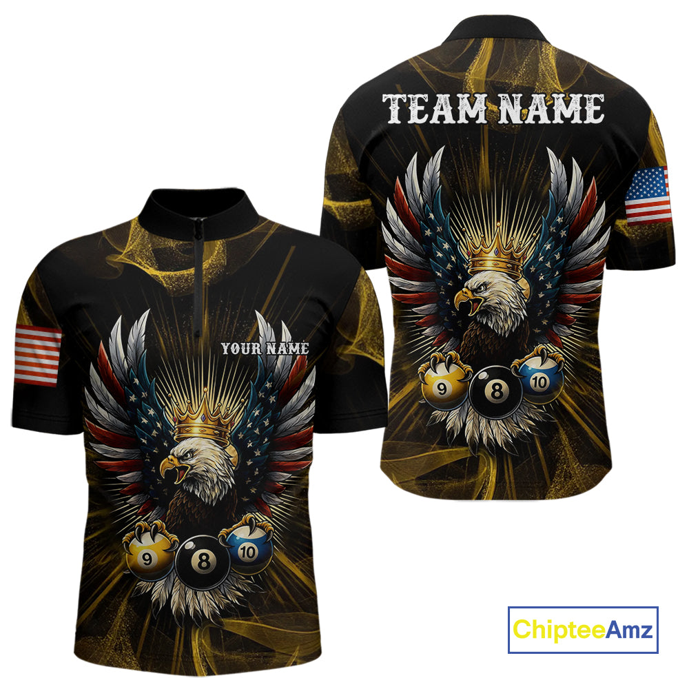 Personalized Crown American Flag Eagle 8, 9 & 10 Ball Pool Shirt For Men, Billiard Team Jersey TDM5044