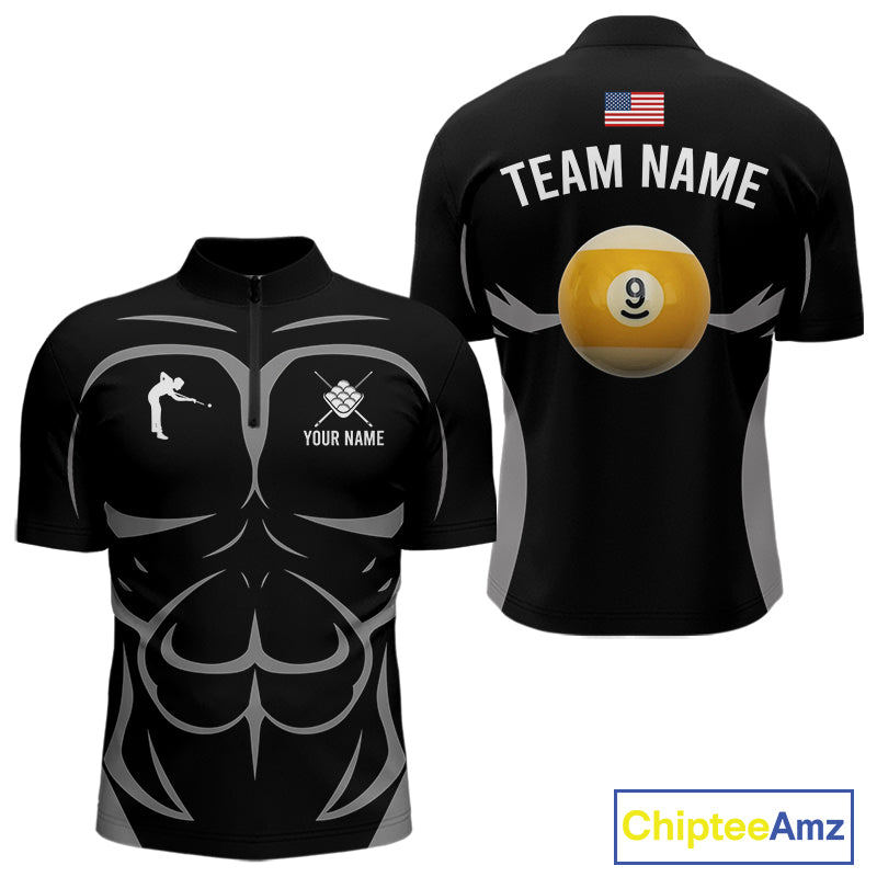 Personalized 9 Ball Pool Team Shirts For Men Custom Billiard Jersey Polo & Quarter Zip TDM5208