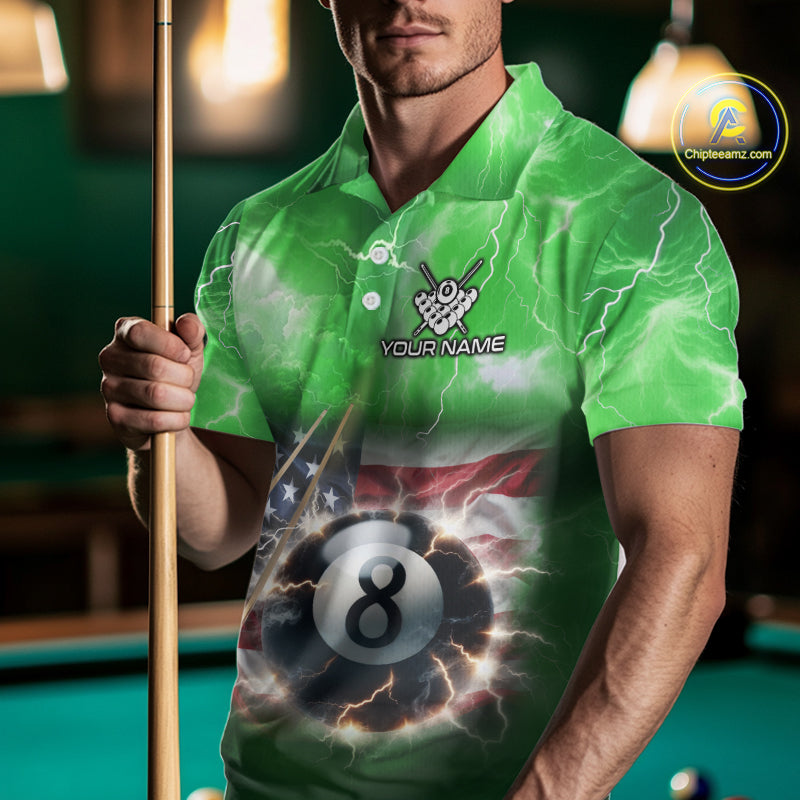 Green American Flag Thunder Lightning 8 Ball Billiard Shirt For Men Custom Pool Team Jersey TDM5265