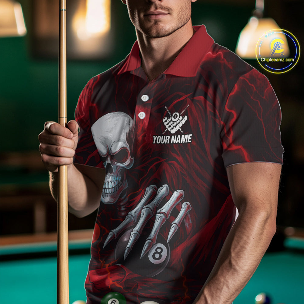 Personalized Red Funny Skeleton Pool Balls Billiard Shirt For Men, Skull Billiard Team Jerseys TDM5343