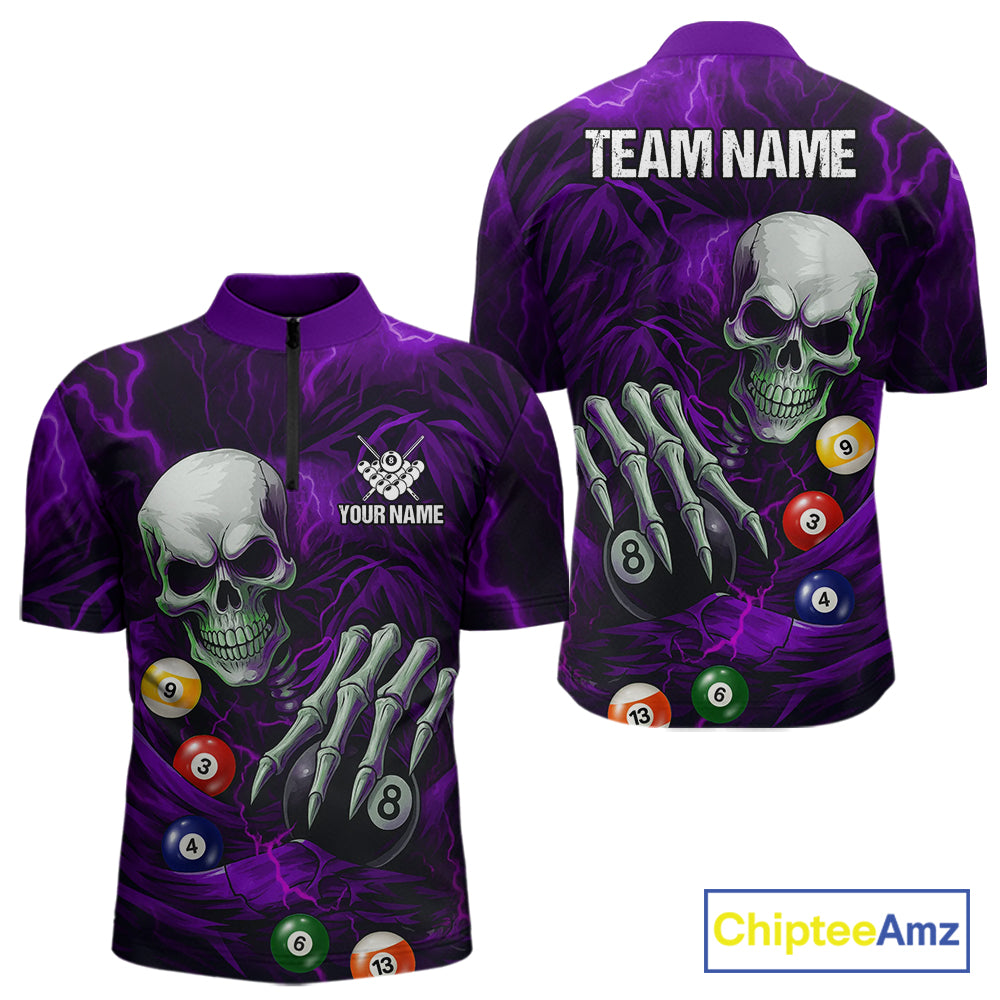 Personalized Purple Funny Skeleton Pool Balls Billiard Shirt For Men, Skull Billiard Team Jerseys TDM5344