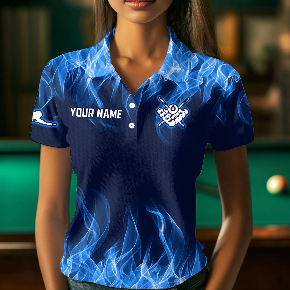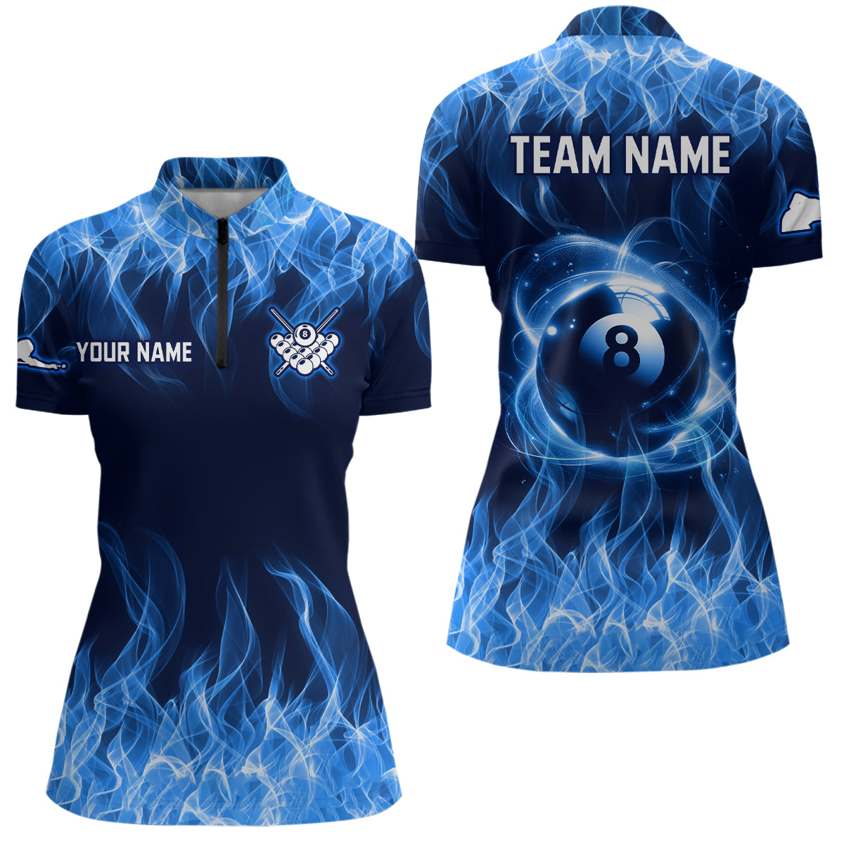 Blue Flaming 8 Ball Pool Shirts Women Billiard Polo & 1/4 Zip Shirts Billiard Team Jerseys NNT10