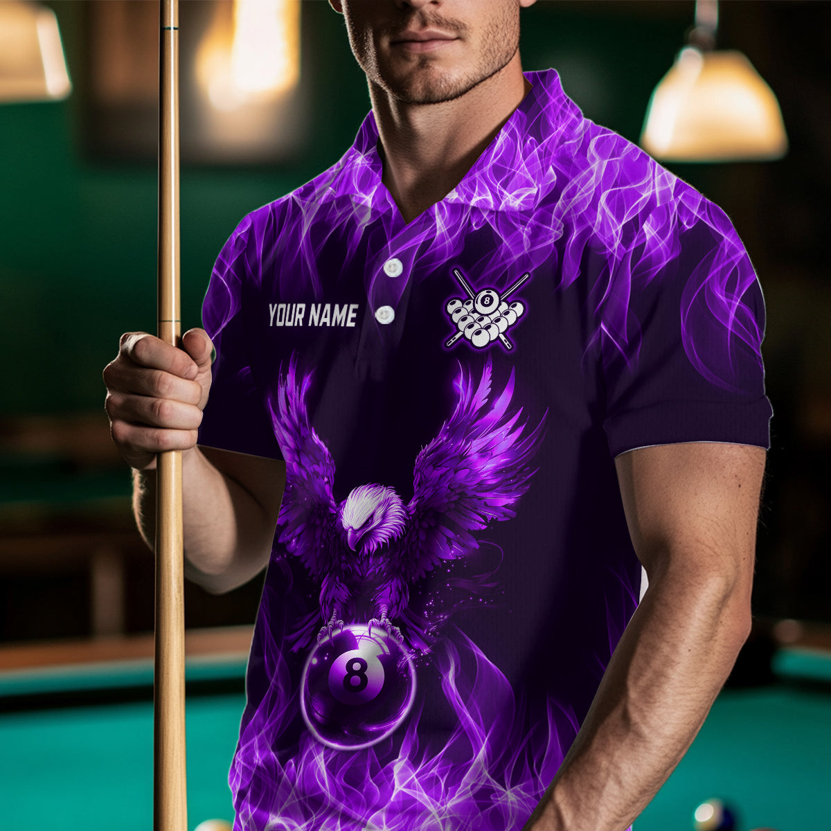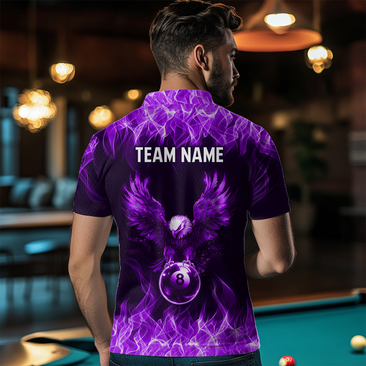 Personalized Purple Eagle Flaming 8 Ball Pool Bliiard Polo & 1/4 Zip, Billiard Shirt for Men, Billiard Team Jerseys NNT36