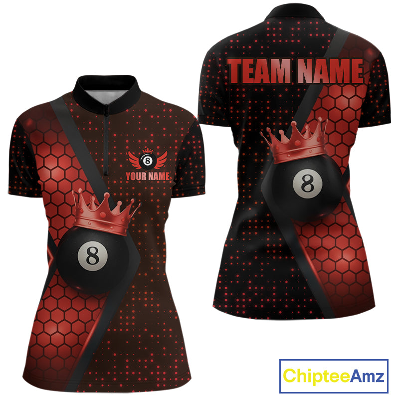 Personalized Red 8 Ball Pool Crown Hexagon Billiard Shirt For Women, Billiard League Team Jersey TDM5047
