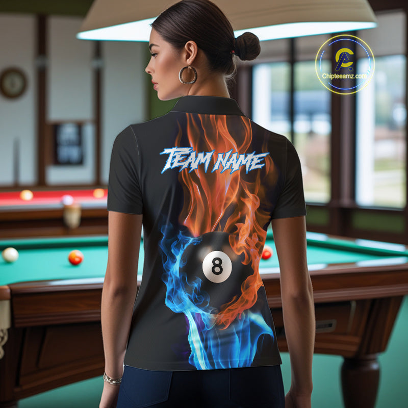 Blue And Orange Flaming Smoke 8 Ball Women's Billiard Shirt, Pool Team Shirts Custom Billiard Jersey TDM5142