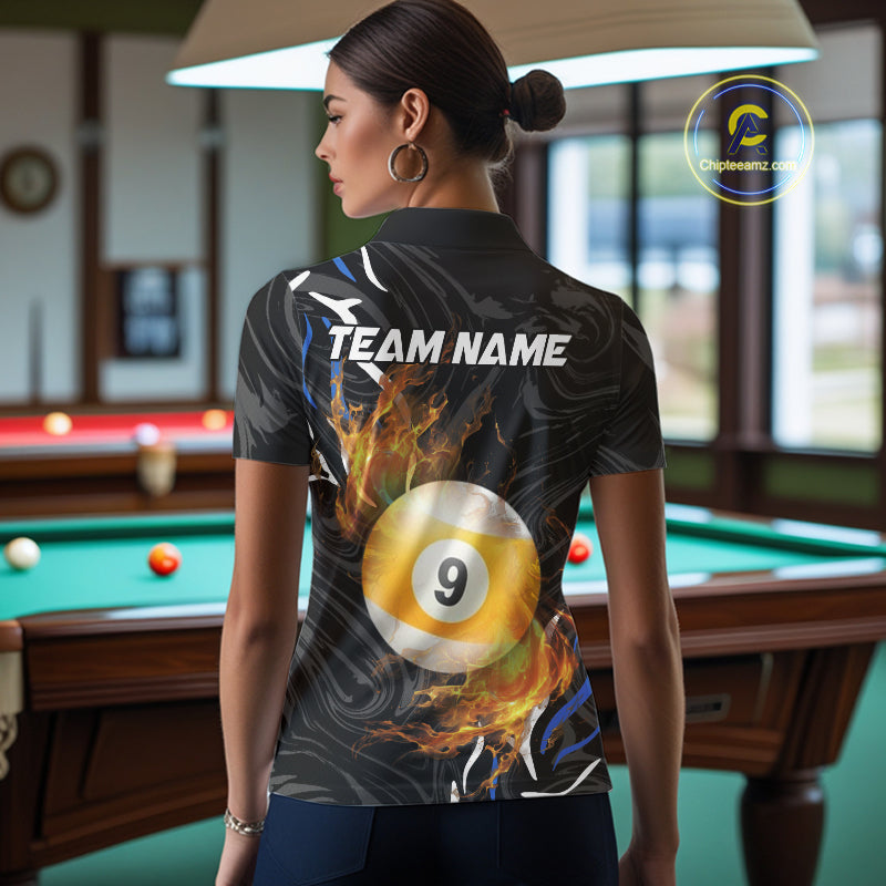 Personalized 8 Ball & 9 Ball Fire Flame Women Billiard Shirt, Billiard Jersey For Team Pooler |Blue TDM5209